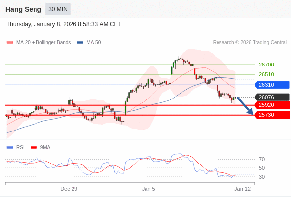 恒生指数 当日内: 目标位为25730。