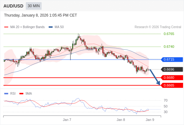 在 0.6715 之下,看跌,目标价位为 0.6680 ,然后为 0.6665 。