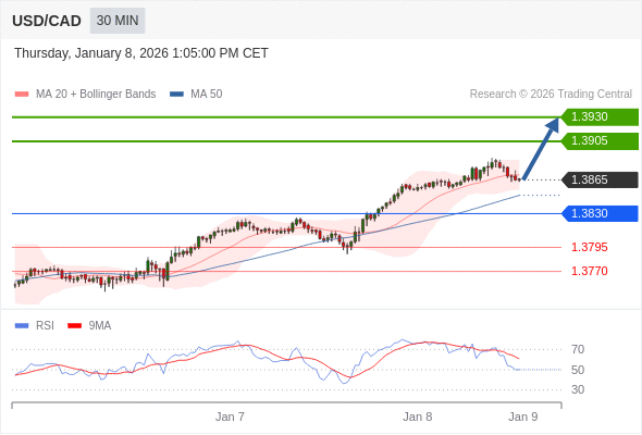 在 1.3830 之上,看涨,目标价位为 1.3905 ,然后为 1.3930 。