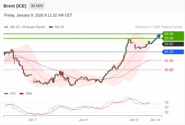 在 62.10 之上,看涨,目标价位为 63.00 ,然后为 63.30 。