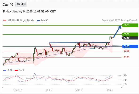 Cac 40 当日内: 期待8308。