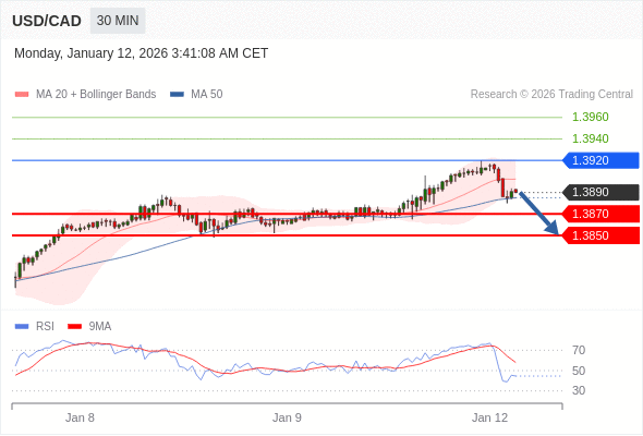 交易策略: 在 1.3920 之下,看跌,目标价位为 1.3870 ,然后为 1.3850 。