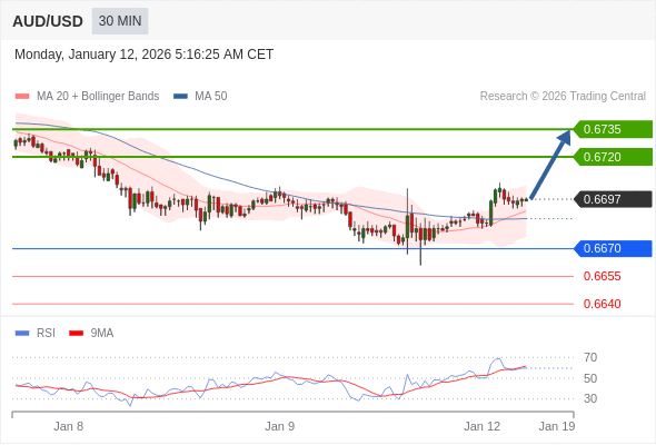 在 0.6670 之上,看涨,目标价位为 0.6720 ,然后为 0.6735 。