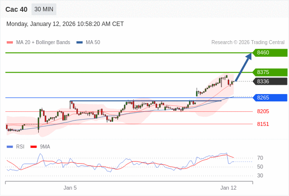 Cac 40 当日内: 上升趋势。