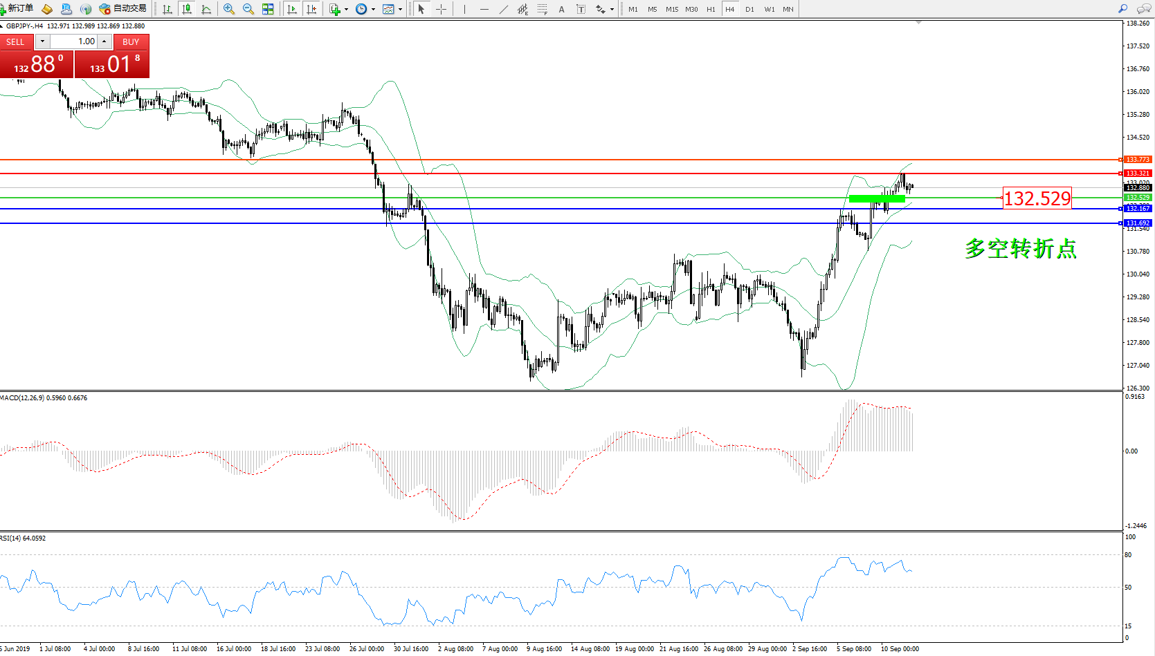 交易策略:132.529上方看涨,目标133.321133.773