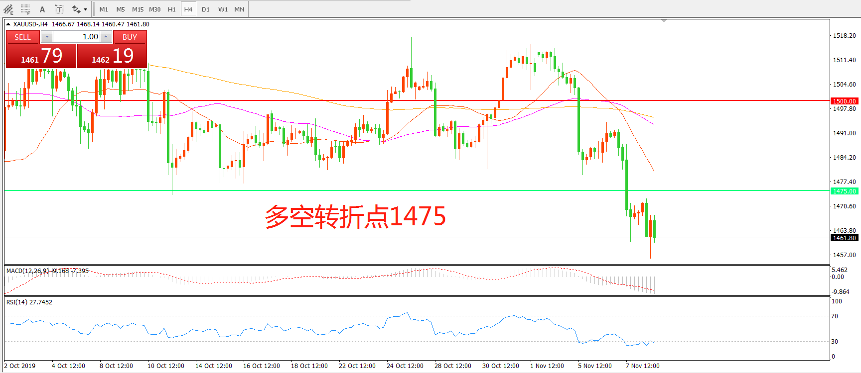 多空转折点:1475.00