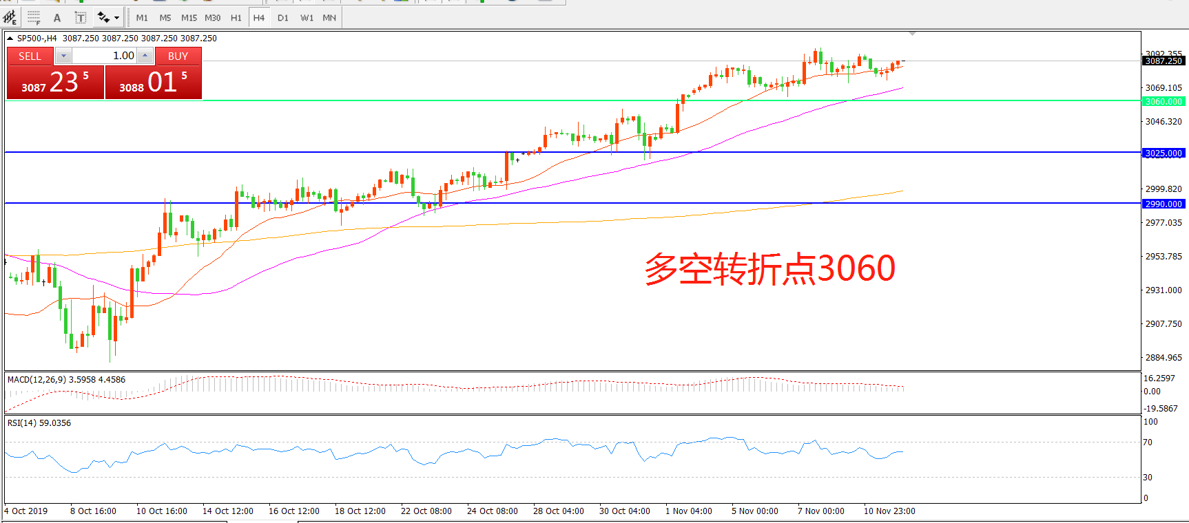 多空转折点:3060.00