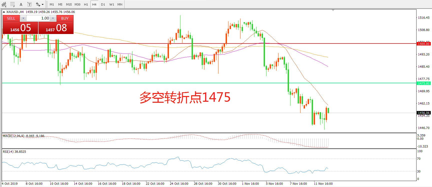 多空转折点:1475.00