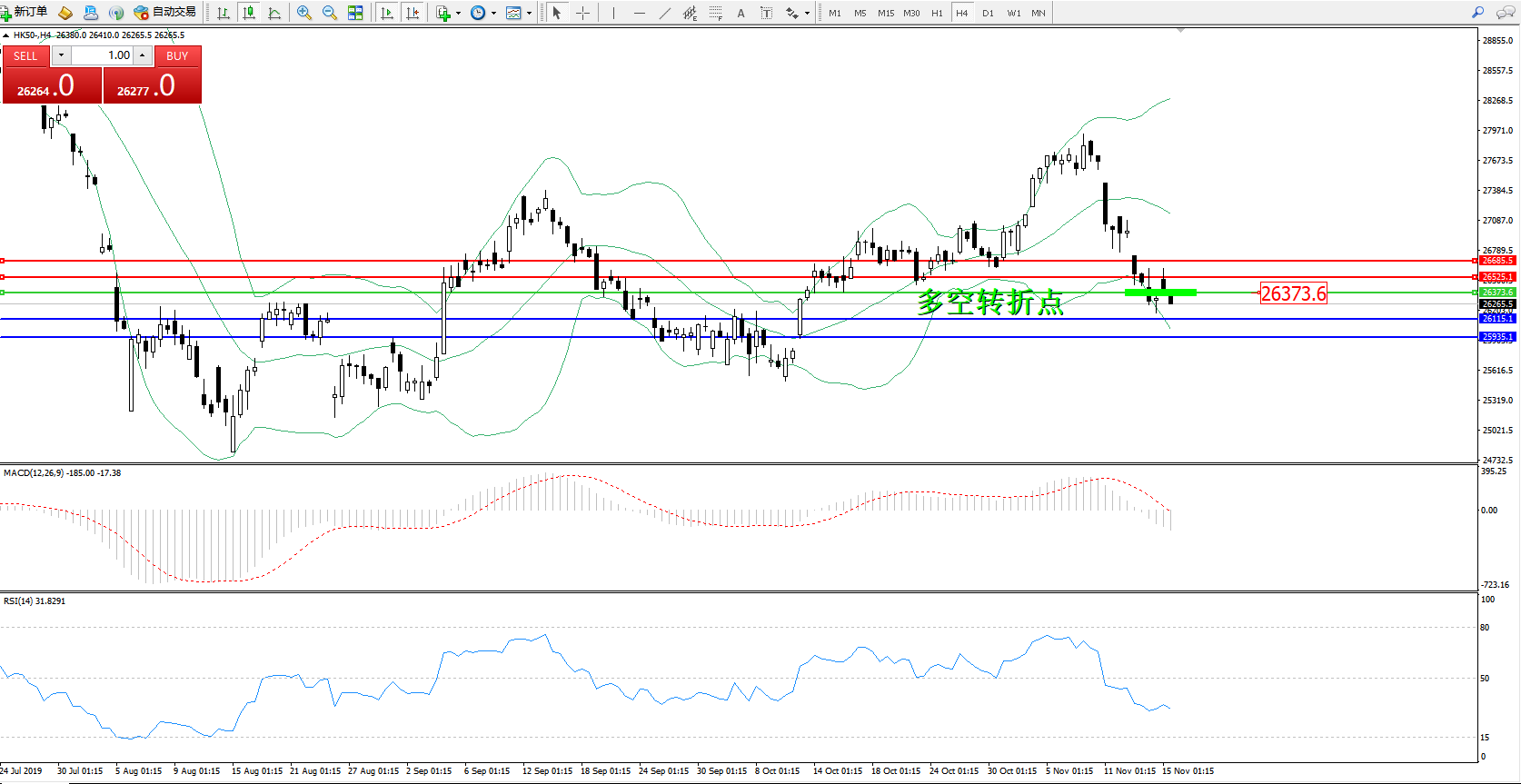 恒指HK50 ——4小时K线图显示: