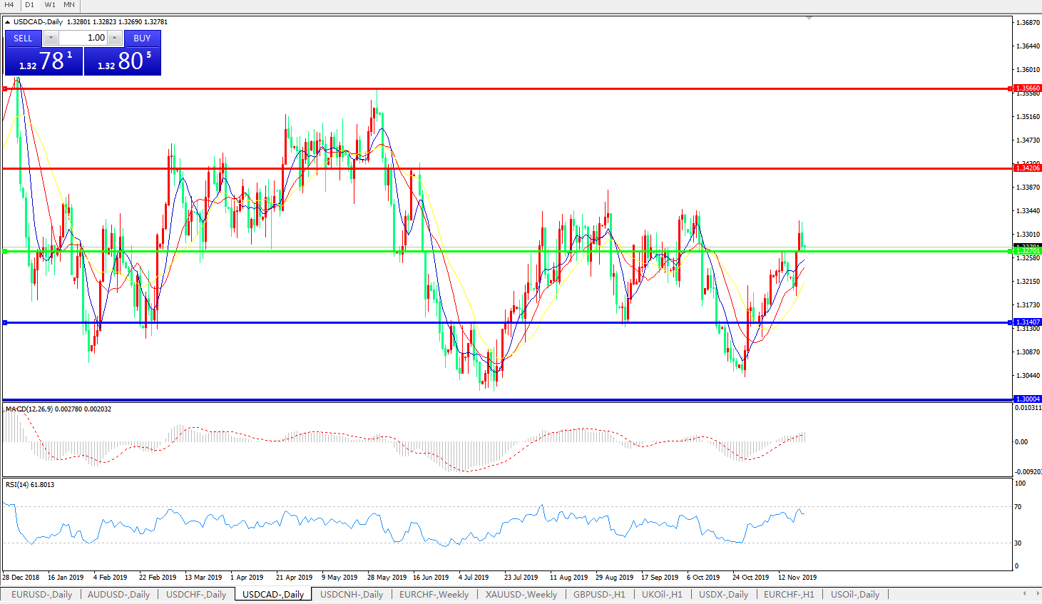 美元兑加元USDCAD    日线图: