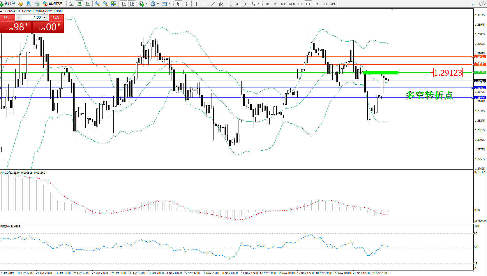 交易策略:1.29123下方看跌,目标1.288511.28676