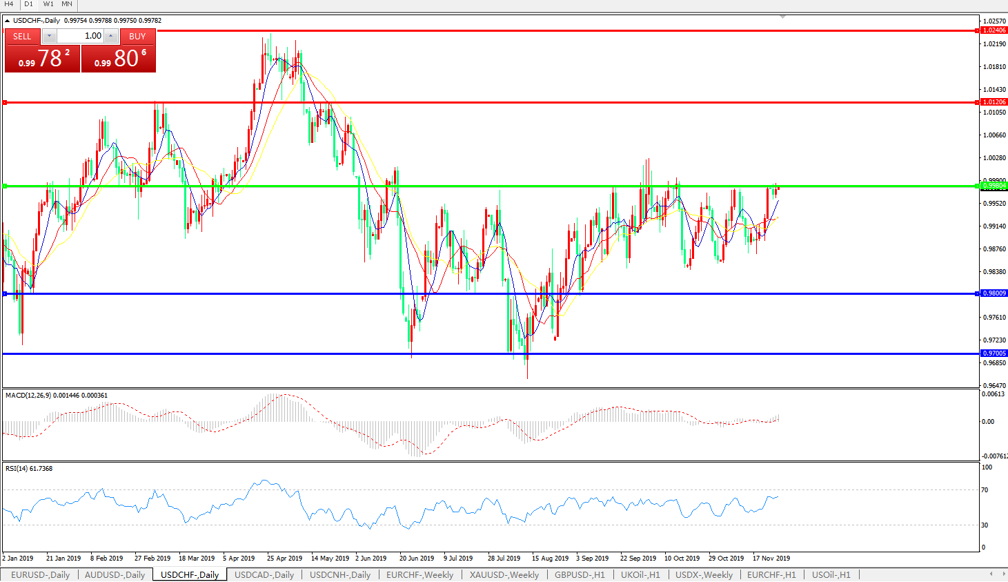 交易策略:0.9980上方看涨,目标1.0120、1.0240