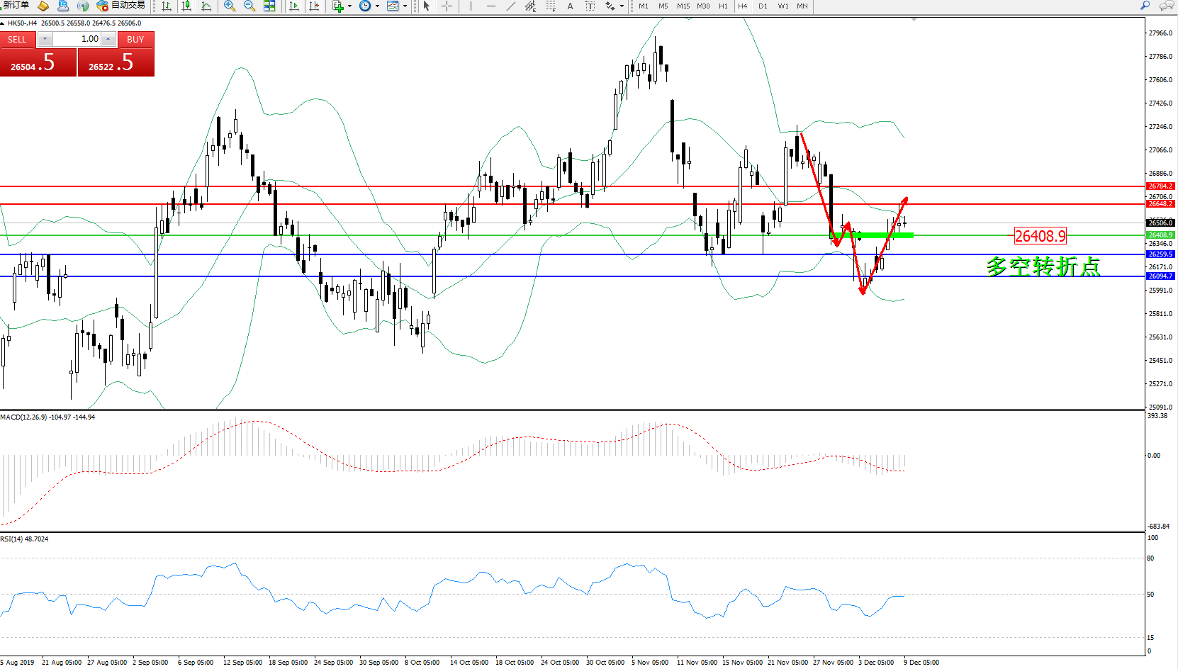香港恒生指数12月9日(周一)收盘下跌3.64点,跌幅0.01%,报26494.73点;港股早上未有跟随美股造好而高开,在欠缺上升动力下,回落倒跌,恒指低见26432。港股在A股走强牵引下持震荡反弹,其中科技板块强于其他板块,尾盘港股收高。高见26618。现外围美股大涨创新高,国际局势以及美国就业数据提振市场信心,给港股反弹带来支持,同时周末中国管理层再释放多项利好消息支持市场流动性,给港股带来做多动力,因此,料港股近期持续向好,可留意绩优股。尽管不断反复时好时坏,但投资者似乎仍旧买账,情绪也是随着消息变得时好时坏。