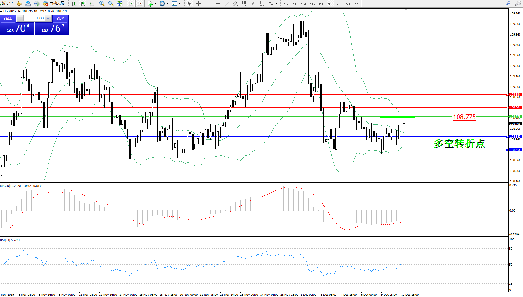 交易策略:108.775下方看跌,目标108.583108.458