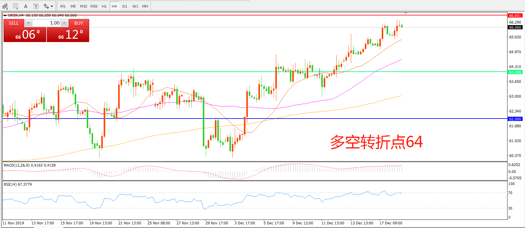 交易策略:在64.00之上看涨,目标66.00    69.50