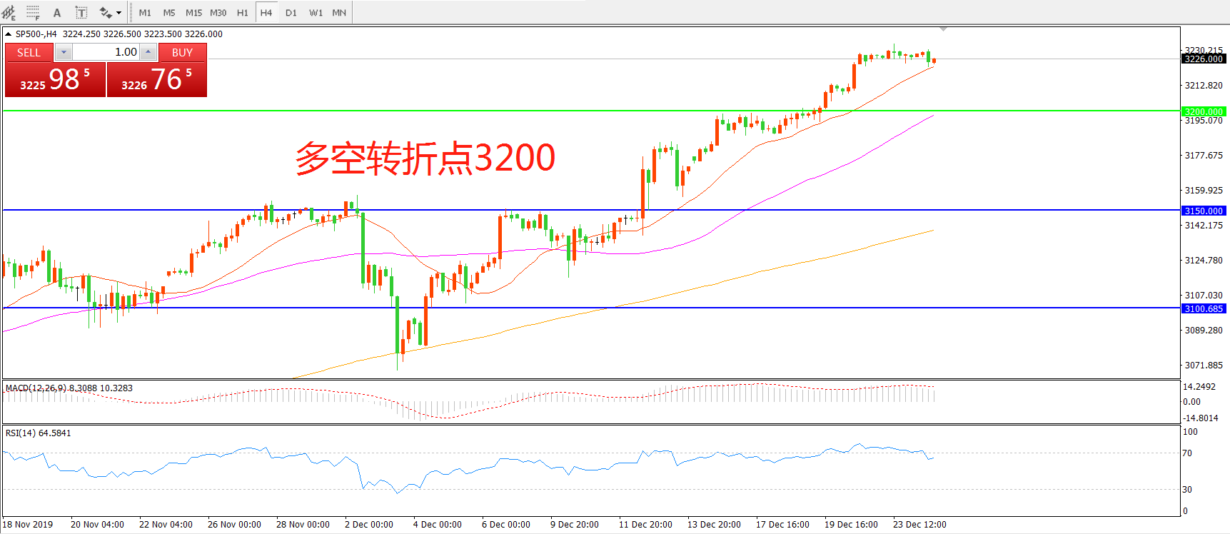 多空转折点:3200.00