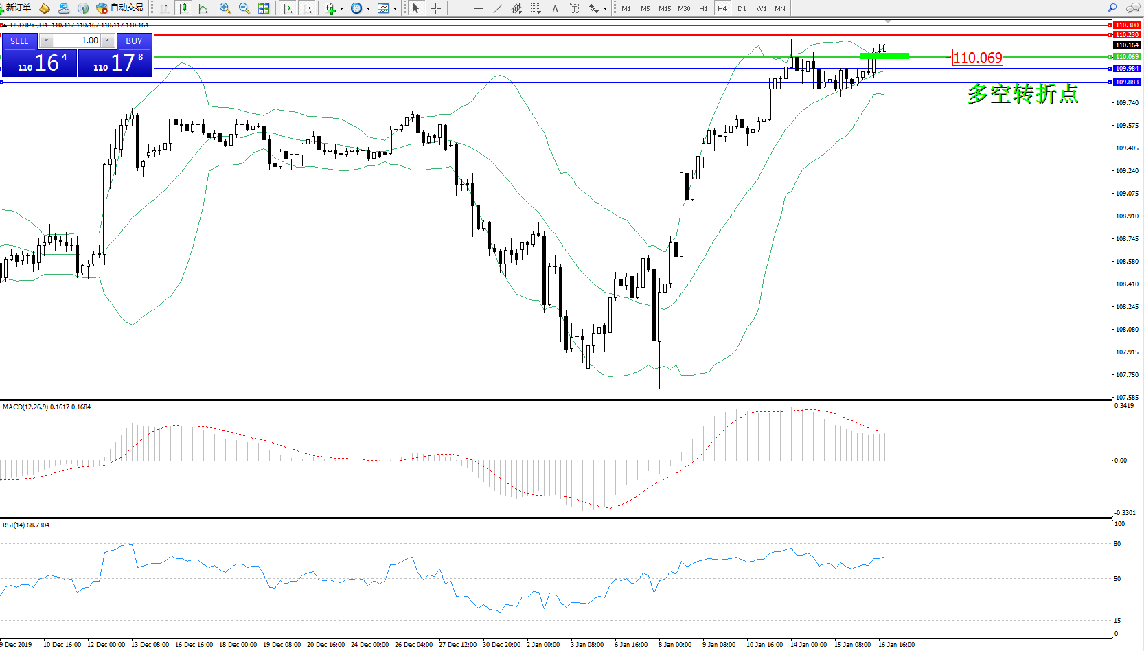 交易策略:110.069上方看涨,目标110.230、110.300