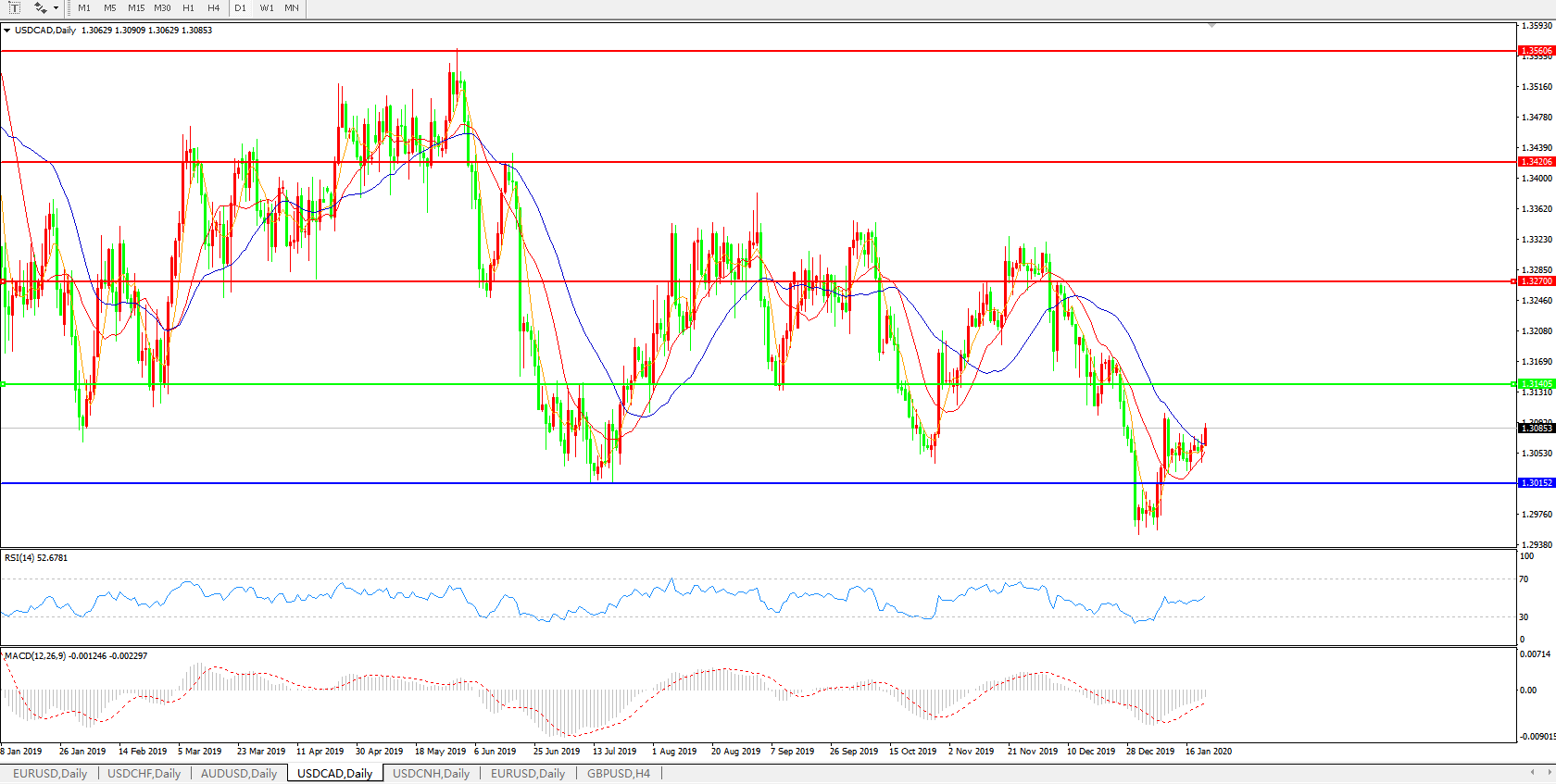 美元兑加元USDCAD 日线图: