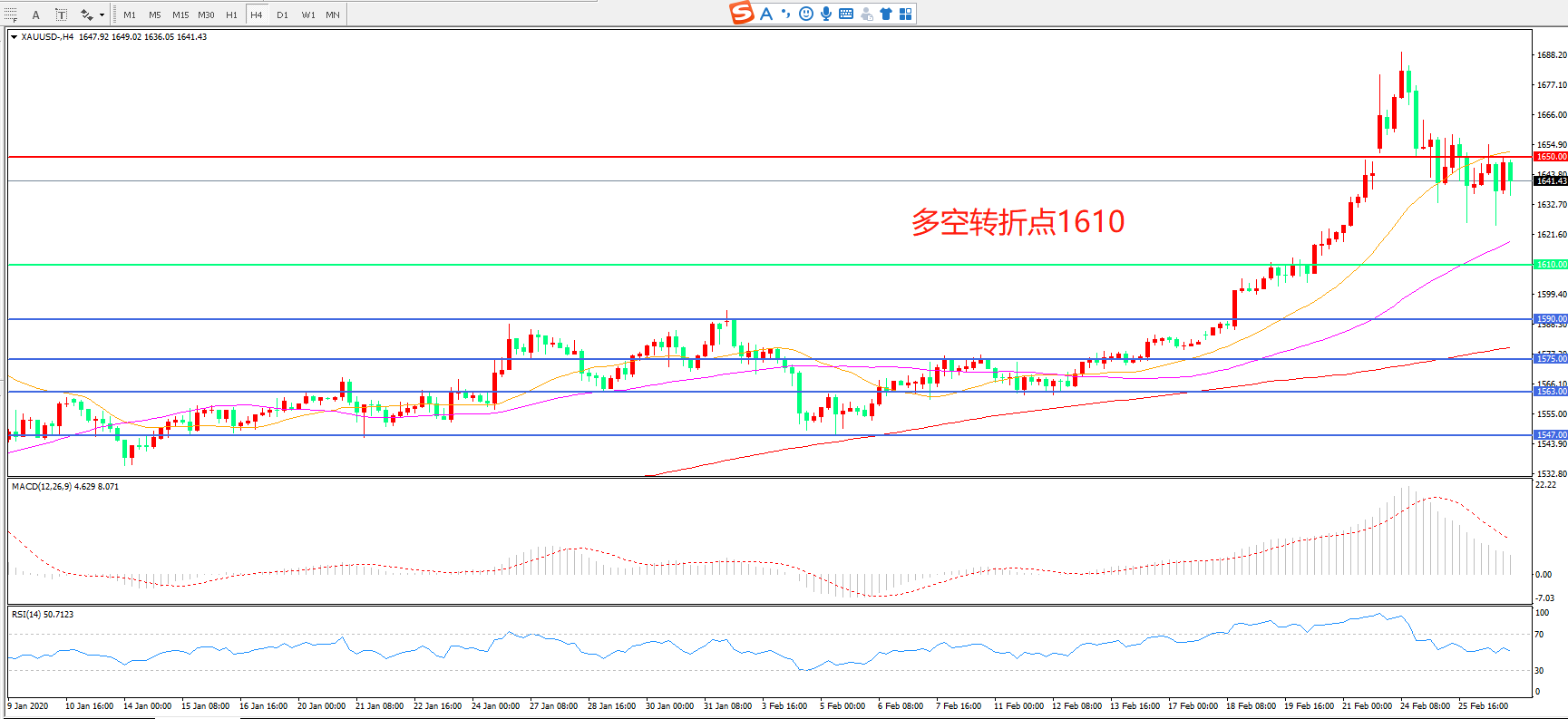 交易策略:在1610.00之上看涨,目标1650.00 1700.00
