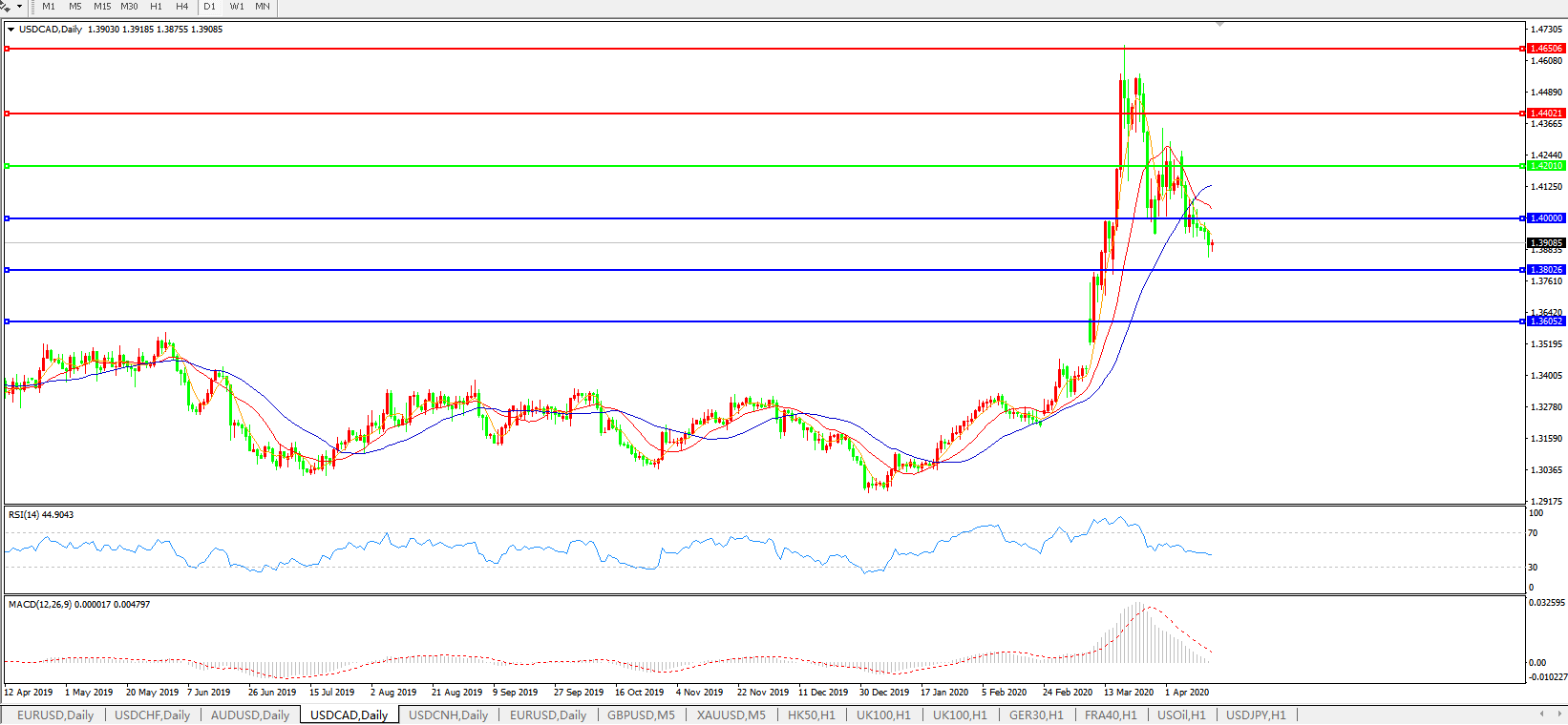 美元兑加元USDCAD 日线图: