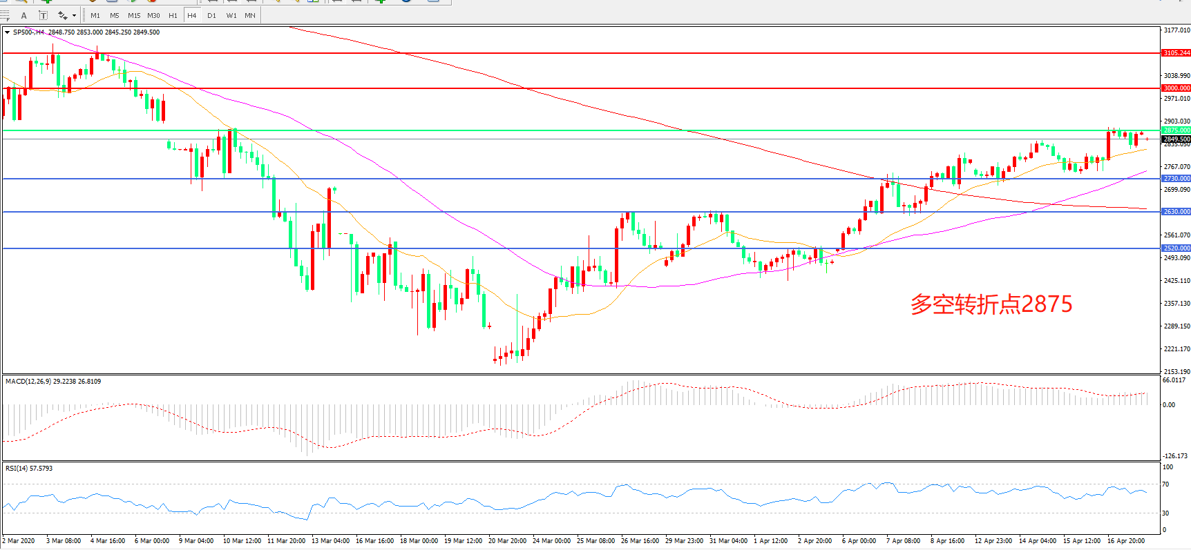多空转折点:2875.00