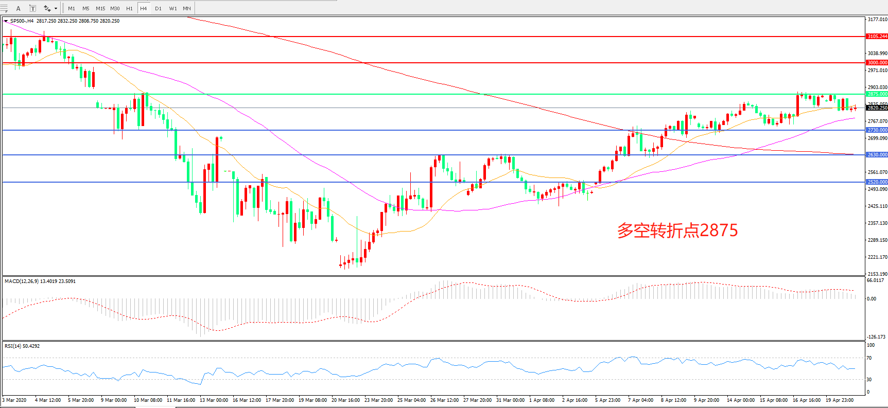 多空转折点:2875.00