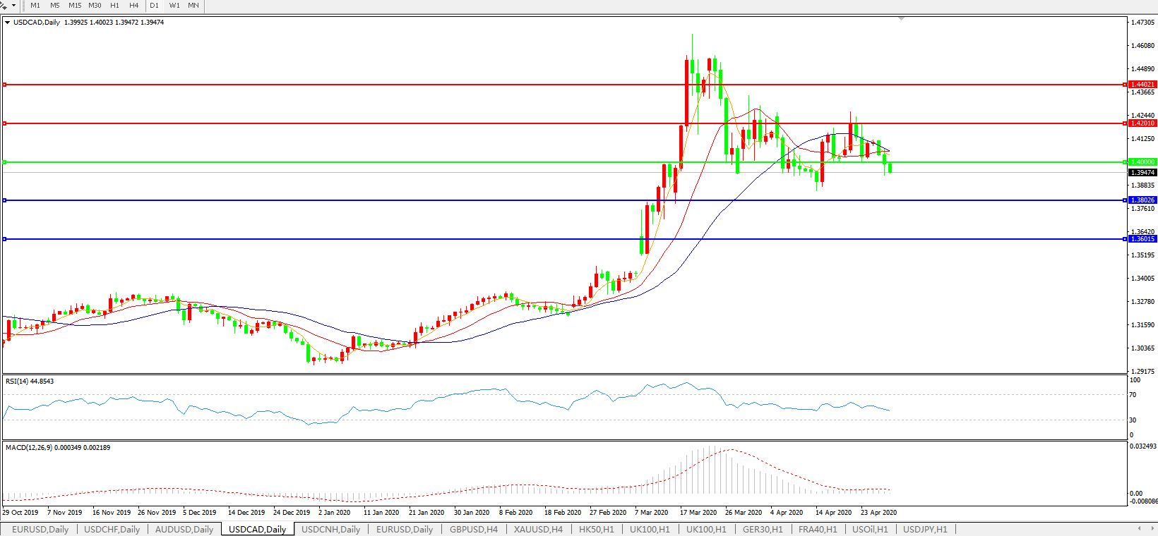 美元兑加元USDCAD 日线图: