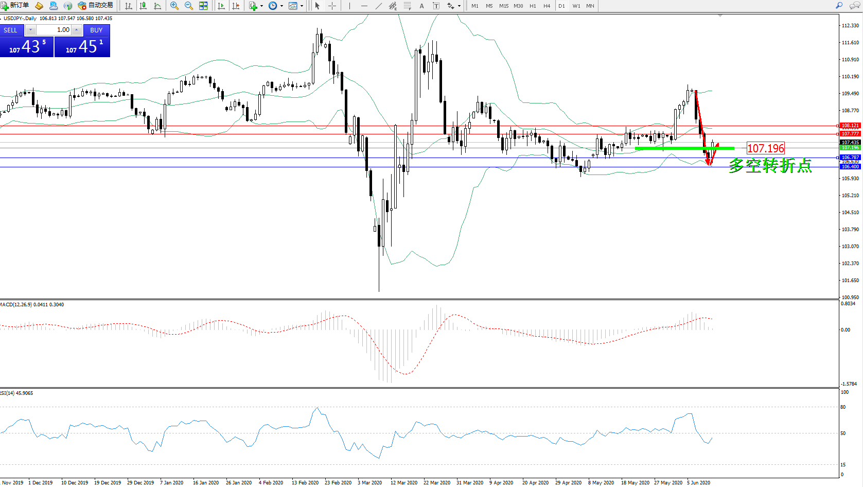 美元日元USDJPY——日K线图显示: