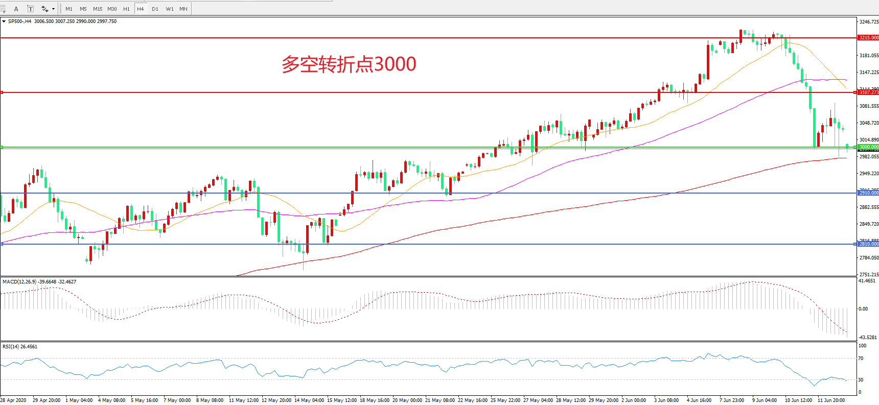 多空转折点:3000.00