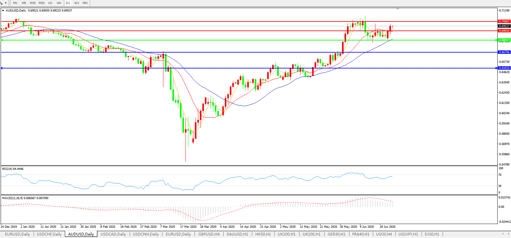 压制位:0.6900 0.7000