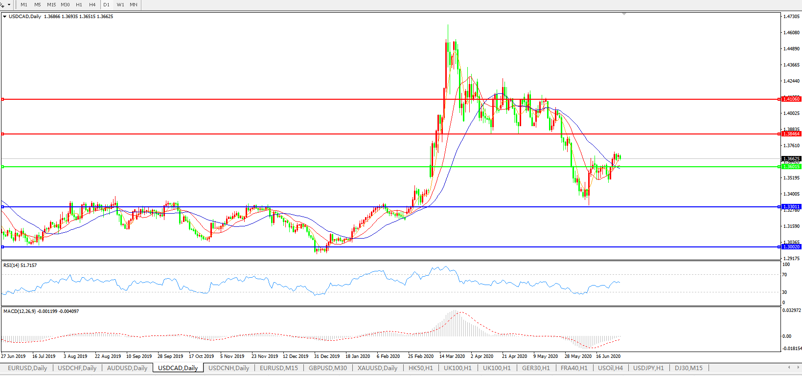 美元兑加元USDCAD 日线图: