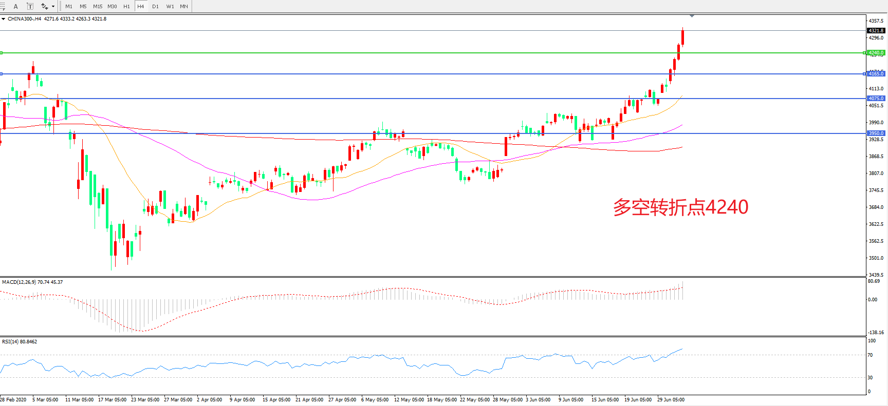 交易策略:在4240之上看涨,目标4330.00       4420.00