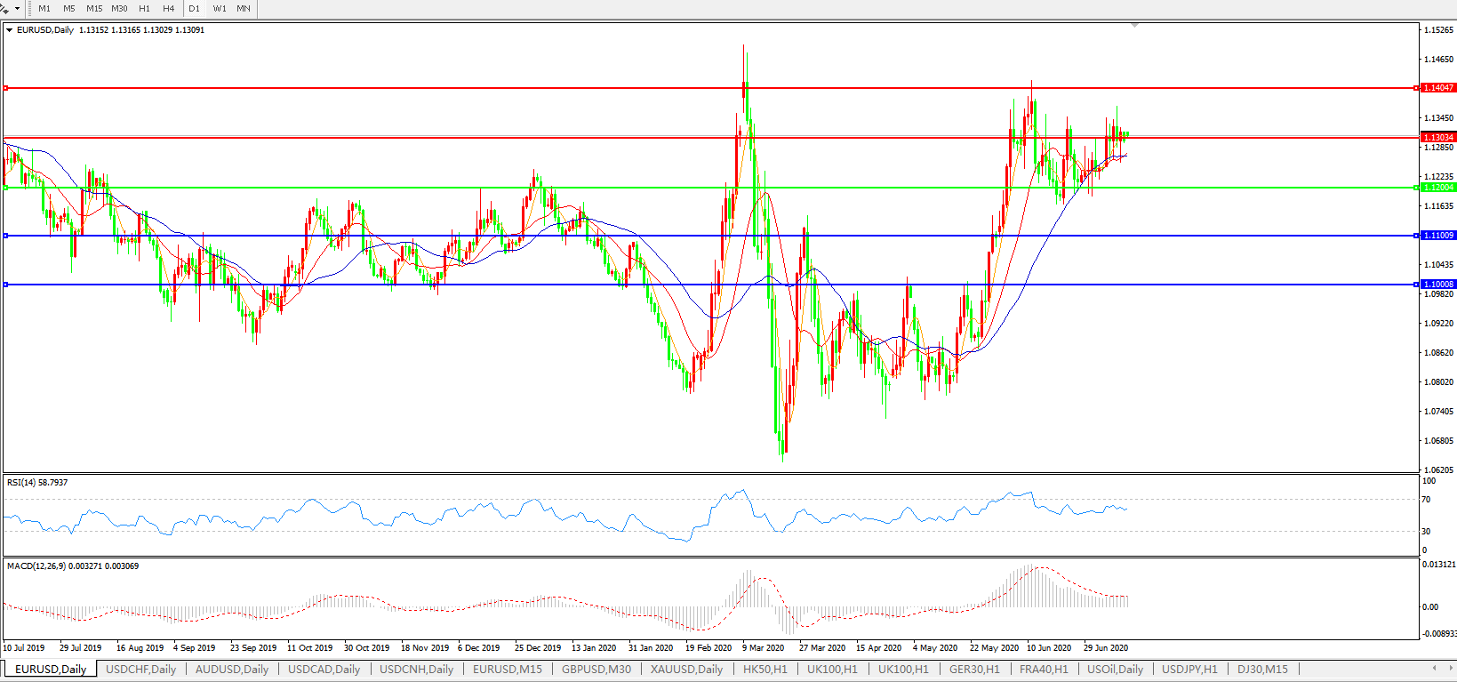 欧元兑美元EURUSD   日线图: