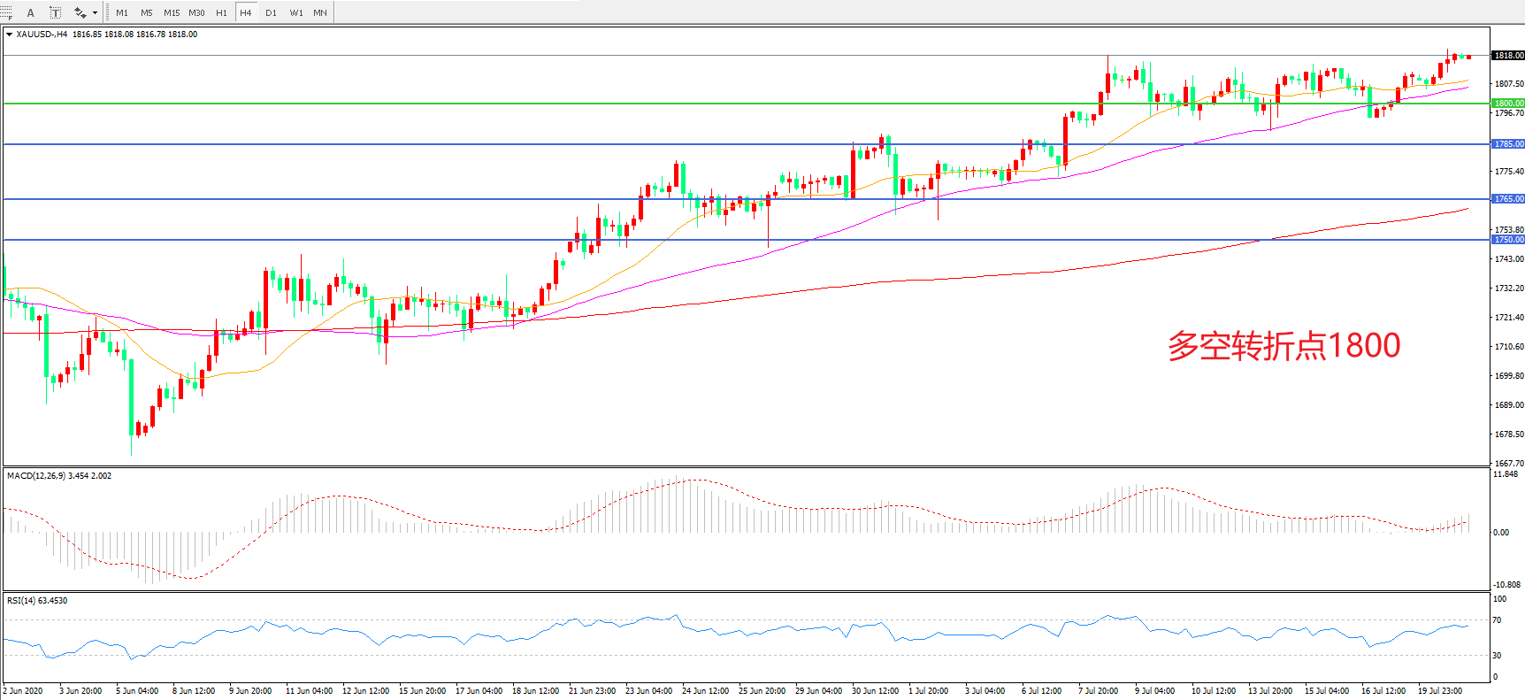交易策略:在1800.00之上看涨,目标1820.00 1845.00