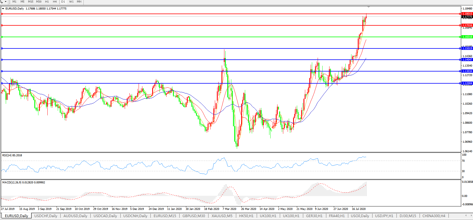 欧元兑美元EURUSD 日线图: