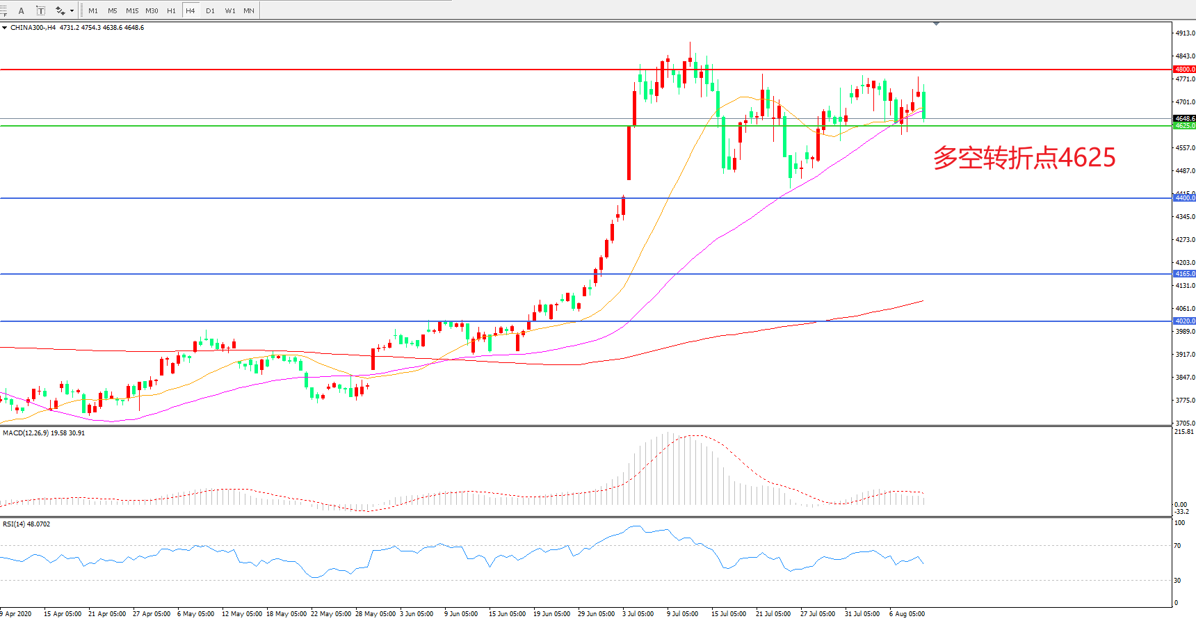 多空转折点:4625.00