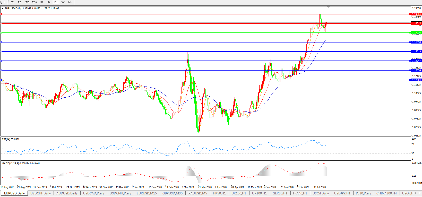 交易策略:1.1700上方看涨,目标1.1800、1.1900、1.2000