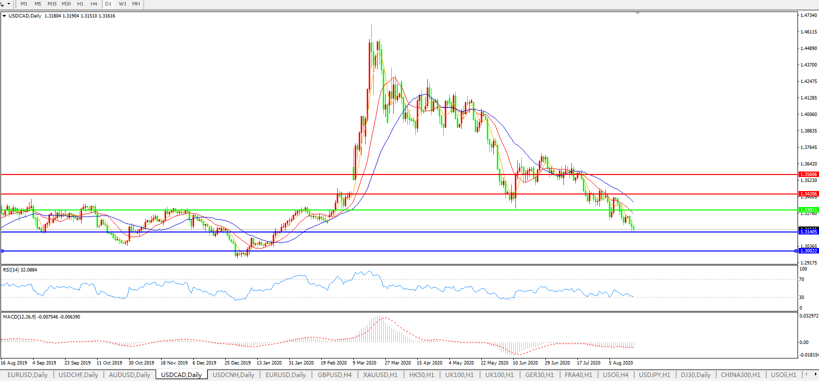 美元兑加元USDCAD 日线图: