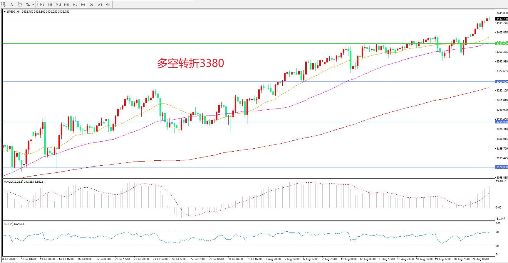 多空转折点:3380.00