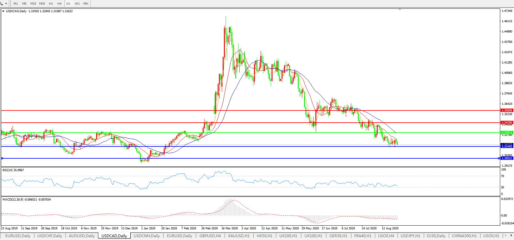 美元兑加元USDCAD 日线图: