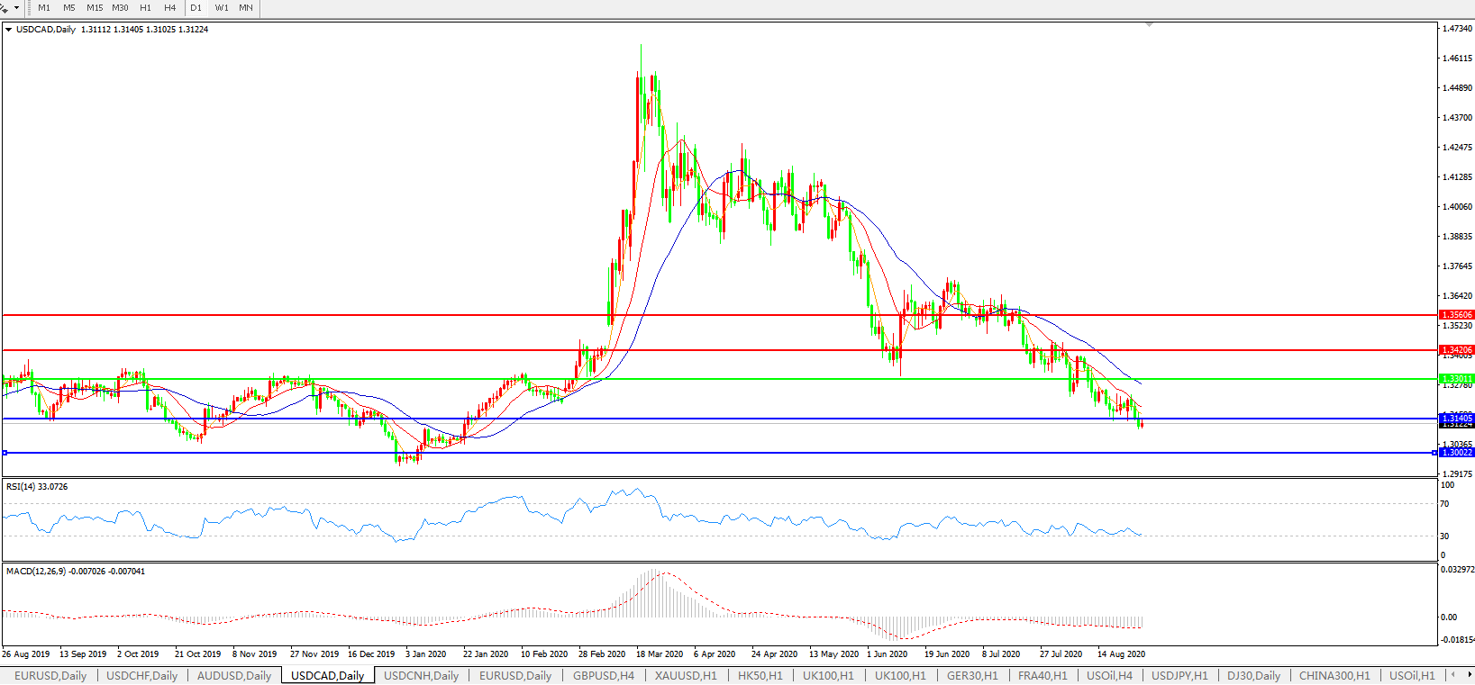 美元兑加元USDCAD 日线图: