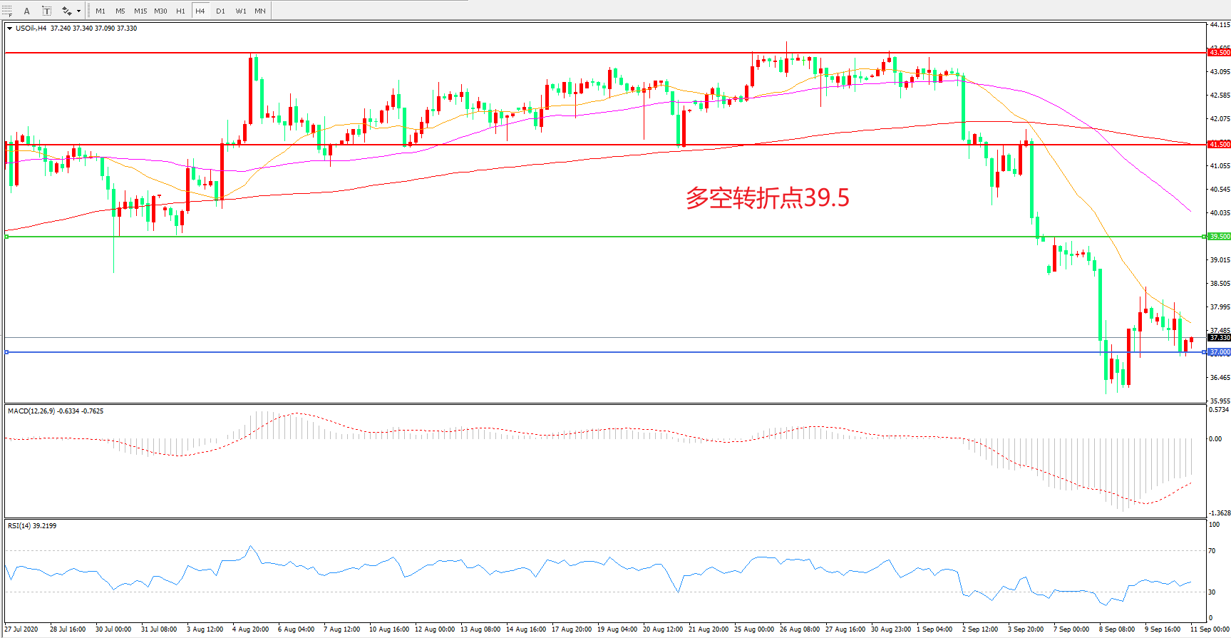 多空转折点:39.00
