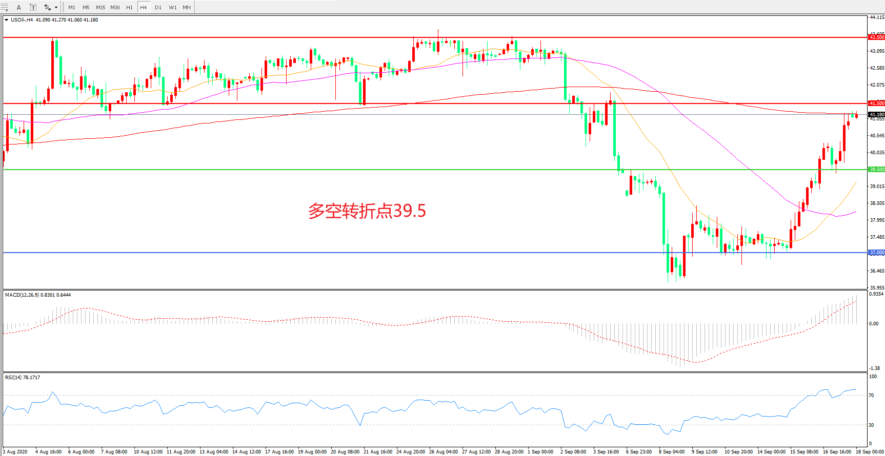 交易策略:在39.50之上看涨,目标41.50 43.50