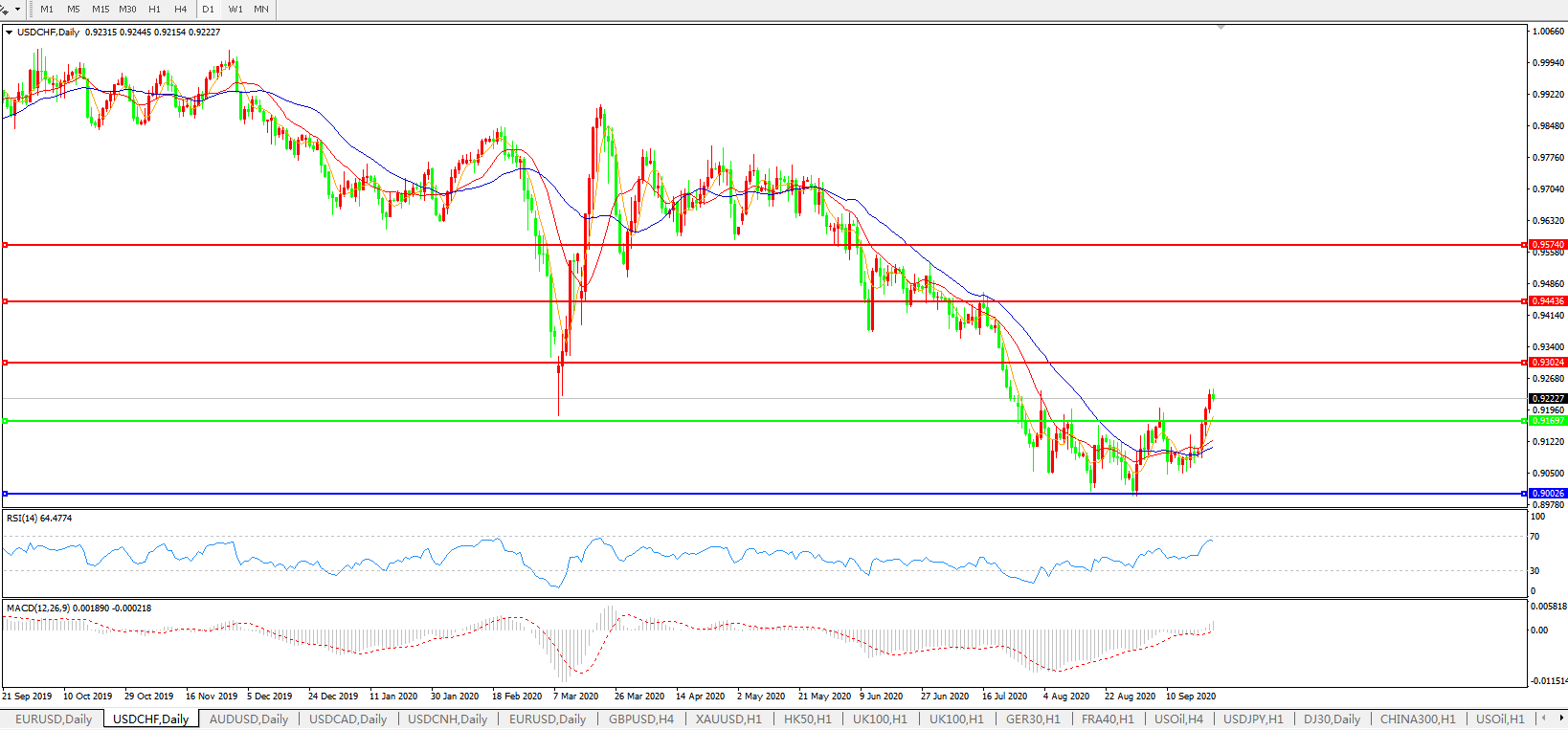 美元兑瑞郎USDCHF 日线图: