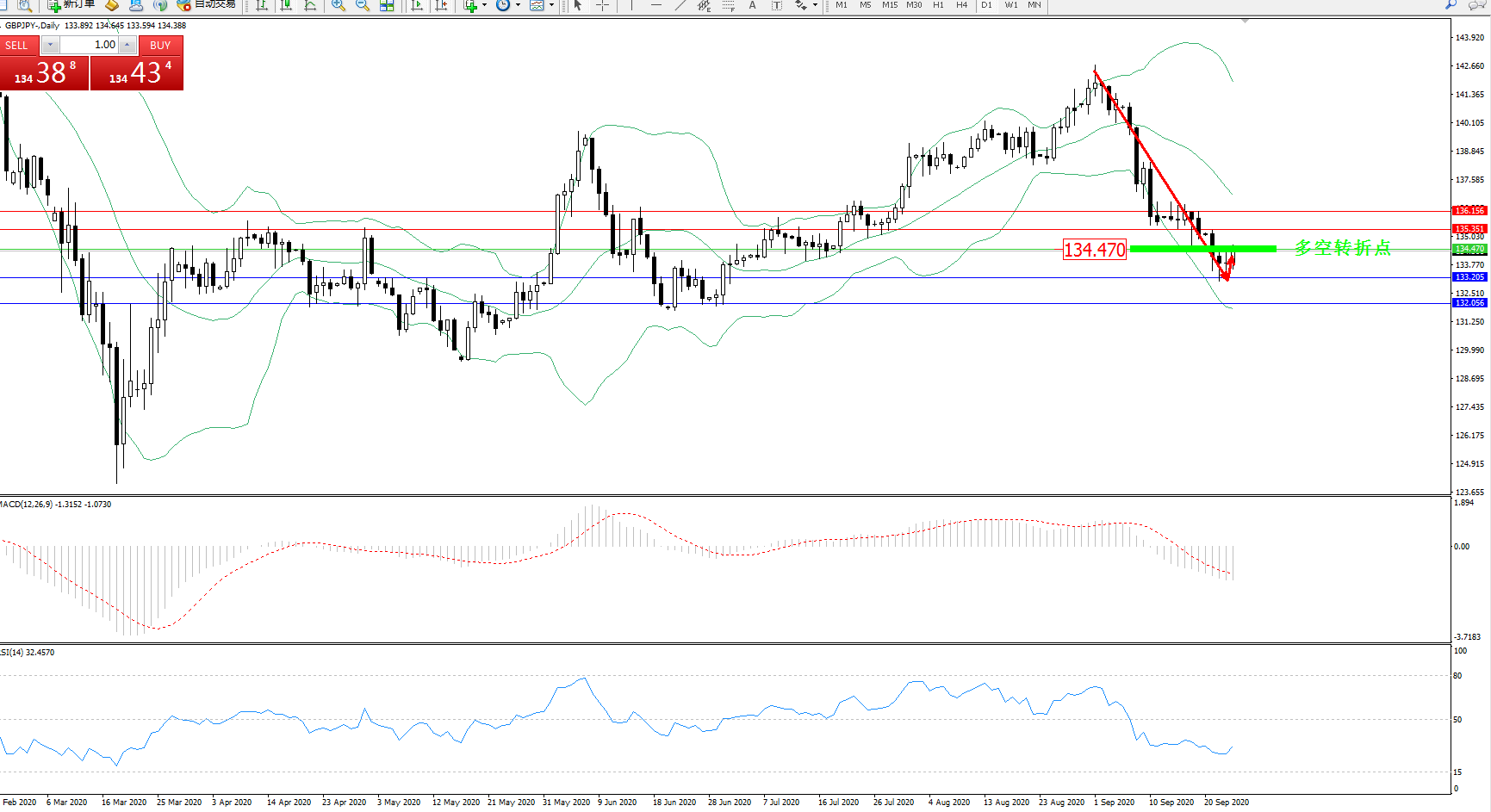 多空转折点:134.470