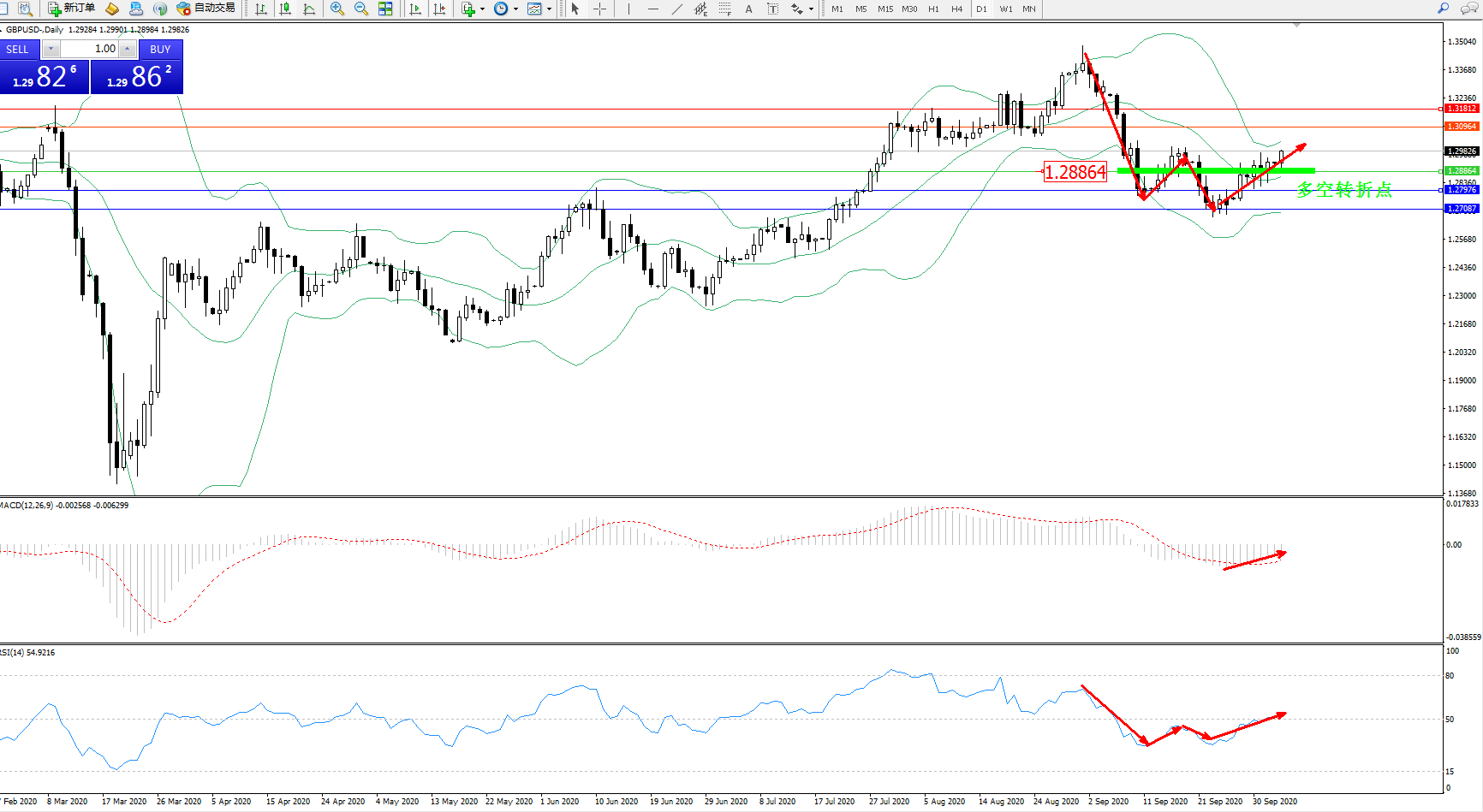 交易策略:1.28864上方看涨,目标1.27976、1.27087