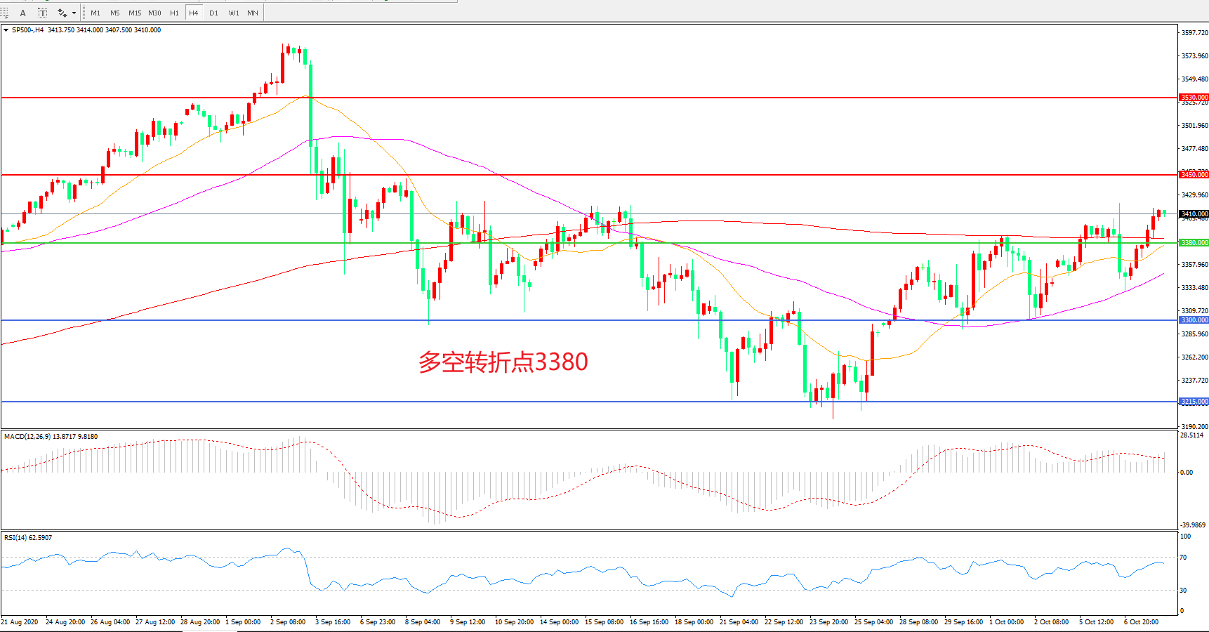 多空转折点:3380.00