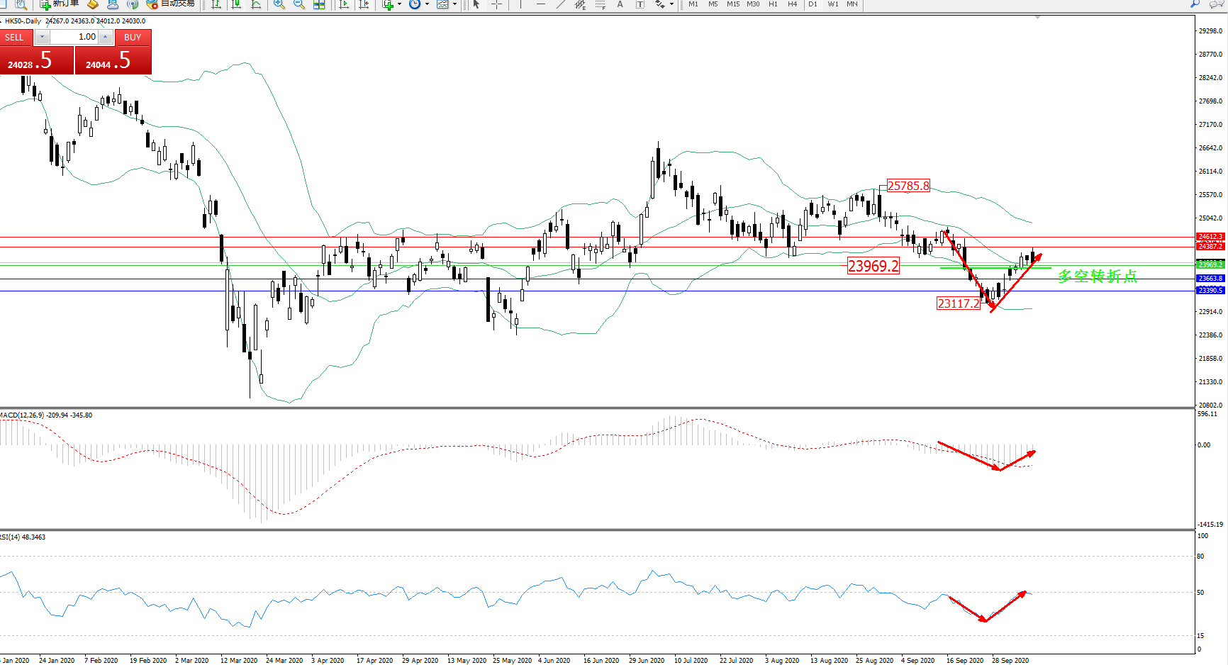 恒指HK50 ——日K线图显示: