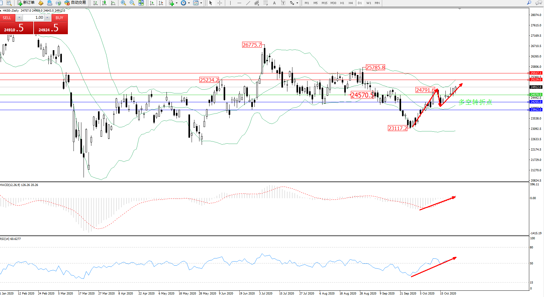 恒指HK50 ——日K线图显示: