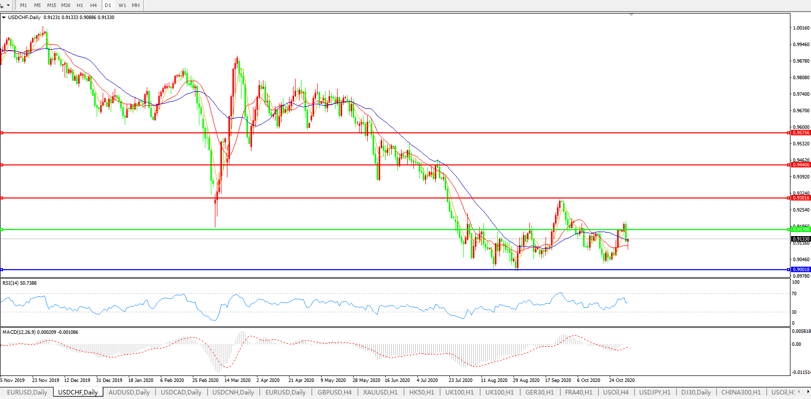 美元兑瑞郎USDCHF 日线图: